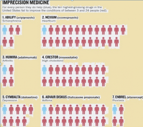 发表在自然杂志上的统计,显示了在美国帮助一小部分(<25%)患者的最高收入的十个处方药。对于胆固醇药物,成功率只有2%的患者。因此,成功的概率相比研究,批准和其他活动的支出是非常低的。