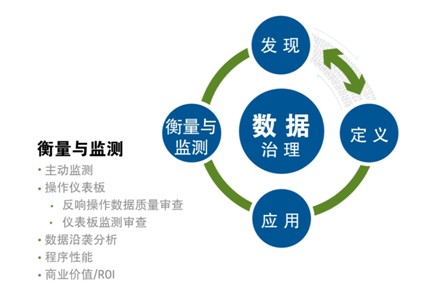 衡量和监测流程1)获取和衡量数据治理和管理工作的有效性及价值;2)监测是否与定义的政策和规则相符,有无异常;3)使数据资产及其生命周期透明并可审核。