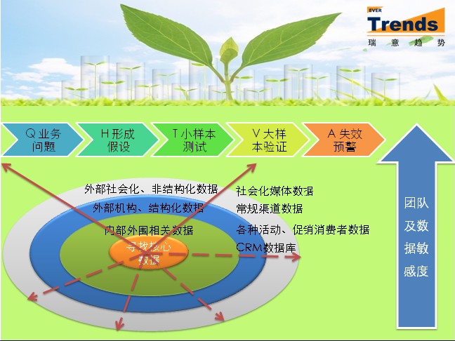有了这个数据库去进行数据挖掘,或者在建立数据的过程中,企业需要从什么方向去探索,也不是漫无目的的。首先应该跟着你的业务,业务现在有哪些问题,或者说这个行业里面主要的竞争点在哪里,这是很关键的。有了这个业务关系以后,再形成假设,也就是说未来的竞争点可能在哪里,大到未来的战略竞争,小到哪些方面。然后下一步要怎么做,这些形成一个假设,其次做一些小样本的测试。很多企业一看大数据就很恐怖,说我也买不起那些大数据,也雇不起那么专业的团队,怎么办?自己做一些小样本的测试,甚至通过电子表格Excel都可以做数据挖掘。不一定非要那么庞大、那么贵的数据。然后再做大样本的验证,验证出来的结果就可以应用到现实中去。