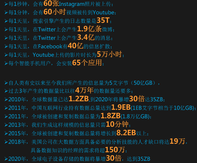 从传统互联网到移动互联网,人们产生的数据越来越多。同时Google Glass的诞生让我们有理由相信,未来每个人都将产生更多的数据。但如果仅仅是简单地将这些数据存储起来,它本身并不具有任何价值。