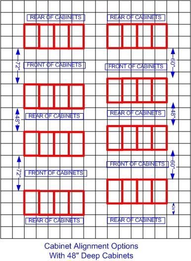 图2 48英寸深的机柜可与地板线完全重叠,也可以交替,安装更灵活