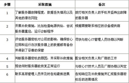 1.管理层对数据中心最有威胁的几个方面的认识,比如火灾、人为操作不当、断电、系统故障和安全问题。有可能管理层开始做的预想不符合实情,但需要在后面快速做出正确的改变。