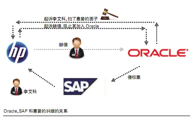 Oracle起诉SAP侵权案是一起相对简单的知识产权纠纷案,就其本身而言,与Oracle的竞争对手——总部设在帕洛阿尔托的惠普公司毫无 干系。但是由于惠普是SAP前任CEO Leo Apotheker(李艾科)的下一个东家,因此惠普也卷了进来。而Oracle、SAP 和惠普三家高层人员的异动让这个案子变得头绪万千,也充满了戏剧性。