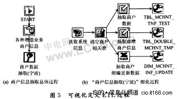 (4)ETL过程定义模块。在初始框架的基础上,可通过ETL定义模块可视化地定义构件库中没有可重用构件的ETL过程,例如手续费和品牌费抽取、商户信息抽取(如图5所示)、终端信息过程等,使整个银联统计分析系统的ETL趋于完善。