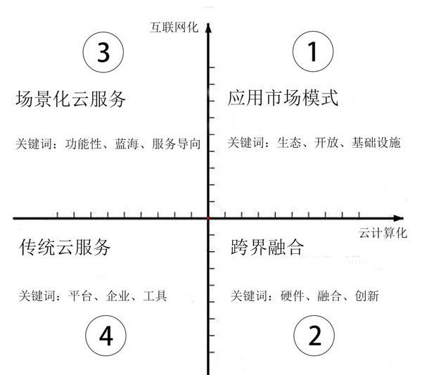 这些不同需求,决定了互联网巨头进入云计算市场时选择了不同的象限。
