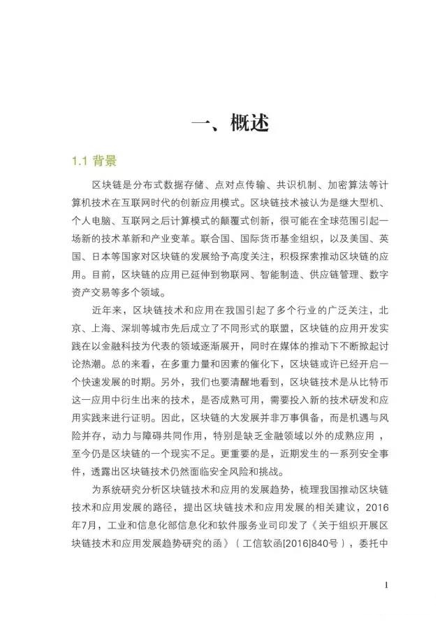 近两年来,联合国、国际货币基金组织和多个发达国家政府先后发布了区块链的系列报告,探索区块链技术及其应用。在国内,金融企业、互联网企业、IT企业和制造企业积极投入区块链技术研发和应用推广,发展势头迅猛。为了积极引导我国区块链技术和应用发展,编写了本白皮书。