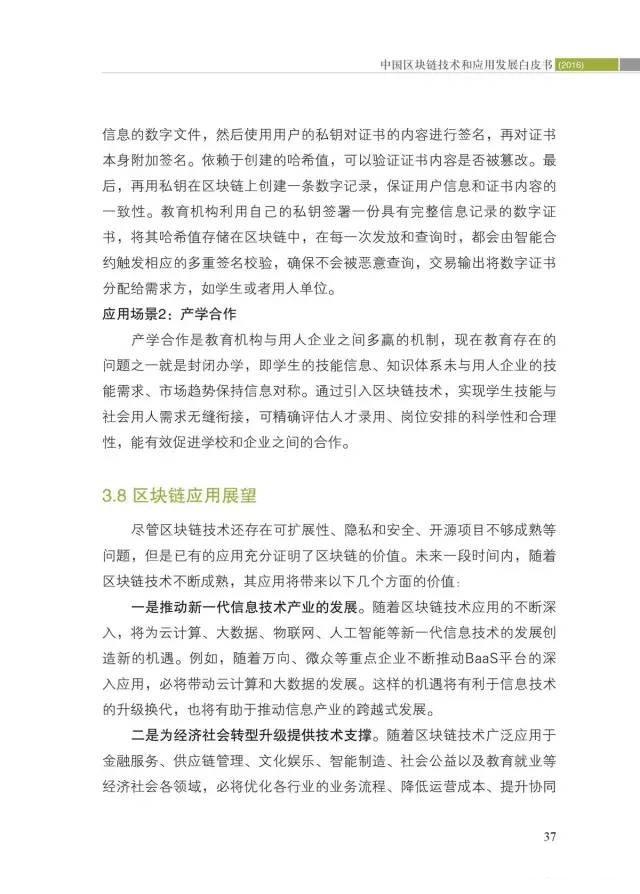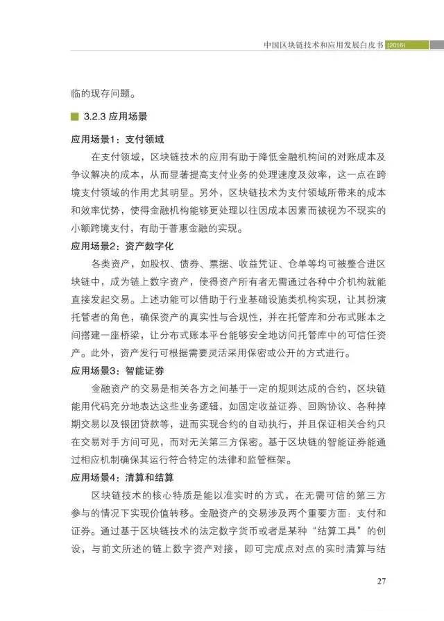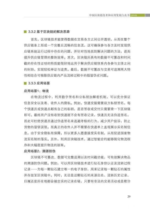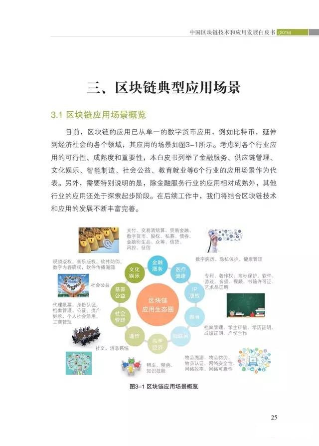 二是区块链典型应用场景及典型应用分析。通过分析全球200多个应用案例,提出区块链的典型应用场景,列举了6个应用相对成熟、应用前景广阔或具有潜在应用价值的应用场景,并对区块链的应用价值进行了展望。