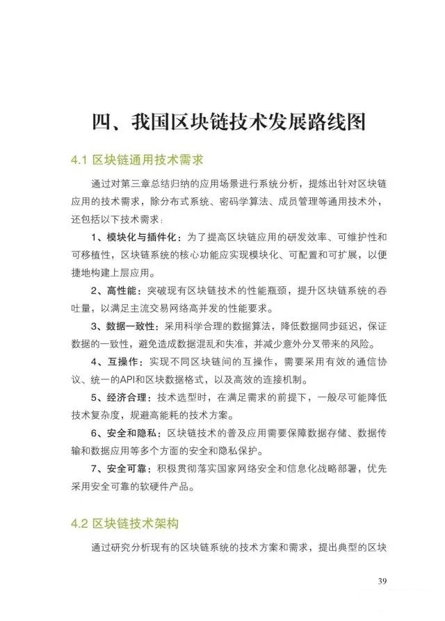 三是提出我国区块链技术发展路线图的建议。通过对区块链技术发展现状的分析,提出由7个主要技术特征构成的区块链通用技术需求和典型的区块链技术架构,分析了共识机制、数据存储、网络协议、加密算法、隐私保护和智能合约等6类核心关键技术,以及区块链治理和安全问题。最后,结合国内外发展趋势,提出了我国区块链技术发展路线图建议。