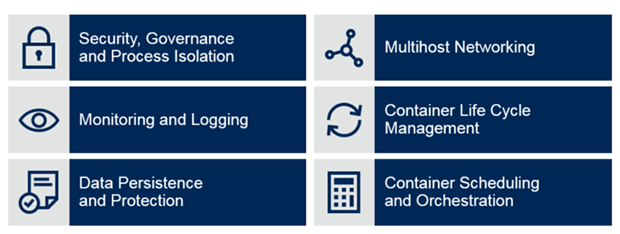 其中,容器部署的关键是提供编排和调度能力。编排层与应用程序进行接口,使容器保持在所需的状态下运行。而容器调度系统按照编排层的要求将容器放在集群中最优的主机上。例如通过Apache Mesos提供调度,Marathon提供编排或使用单个工具Kubernetes或Docker Swarm提供编排和调度。客户在编排引擎之间或跨Kubernetes发行版之间进行决策时,需要重点考虑以下几个方面: