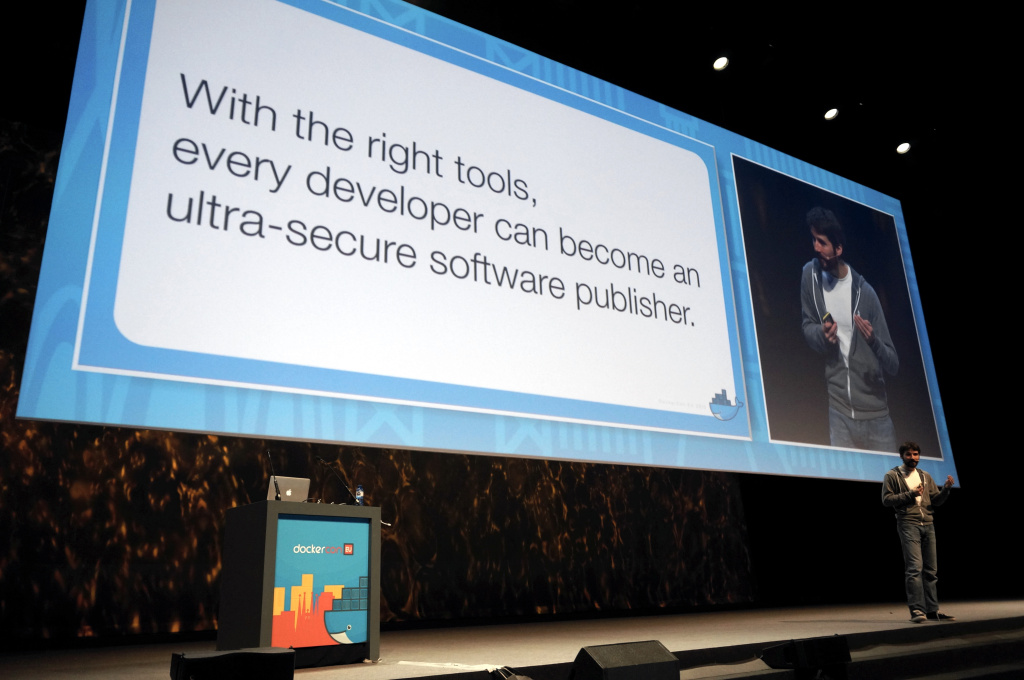 作为Docker的产品总监,Scott Johnston在本周早些就告诉我,Docker团队的目标是改善Docker平台同时确保使用Docker的开发者们不会去做一些“让他们平时的工作流不自然的事情”(Hykes称之为“美好而舒适的开发流”)。例如,新的硬件签名特性,它是基于最近推出的新的Docker Content Trust框架,这个框架允许容器的数字签名。