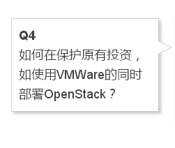 一种办法是把VMWare虚拟机纳入到OpenStack管理范畴;另一种办法是想办法做迁移,即把VMWare虚拟机迁移到OpenStack上,可能这中间会有downtime时间;还有就是追加部分投资,让新的资源跑OpenStack,等VMWare上虚拟机过了生命周期,逐步淘汰掉,这种方法是一种长期的过程。各种方法之优劣需企业结合自身资源及需求状况,权衡判断。