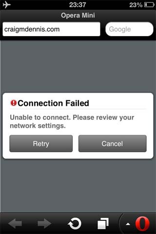 当然,出错的情况不止会发生在浏览器当中。再次以Gmail的iPhone客户端为例,他们同样使用了情感化的元素来呈现出错信息——一个看上去不那么开心的小云朵——似乎应用自身也很理解用户当前的感受。
