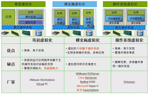 - 寄居虚拟化:虚拟化管理软件作为底层操作系统(Windows 或 Linux 等)上的一个普通应用程序,然后通过其创建相应的虚拟机,共享底层服务器资源。
