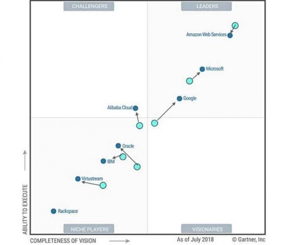 Gartner魔力象限显示,谷歌微软在公有云存储上高歌猛进