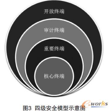 针对APT防御在完整部署私有云安全平台后,可以依据以下的多级防御模型进行实施。该模型将终端划分为多个安全级别,每个安全级别的风险根据不同的数据进行评估,下面以私有云安全平台某版本内置的四级安全模型为例。该模型将终端分为:开放终端、审计终端、重要终端、核心终端。开放终端仅处理恶意软件;威胁评估依据是恶意软件的存在数量和系统、软件漏洞数量;审计终端则有相关的安全基线策略(但不严格,仅记录不在基线的程序不阻止),除开放终端的评估依据外增加违反安全策略的违规操作;重要终端则对不在基线内的程序运行时给予提示,询问用户是否允许,如果允许则记录违规操作,增加风险值;最后是核心终端,是不允许运行和存在基线外的任何文件,如果存在则也会增加风险,如图3 所示。将四类终端各一个的风险值记为R0、R1、R2、R3。一个APT 由两个未知程序程序构成,记为A 和B。A 和B 均有传播和驻留的功能,任何一个驻留成功后均会将另一个写入被攻陷的终端。