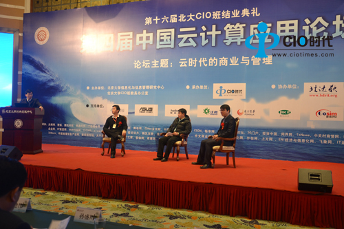 2014年1月12日,由北京大学信息化与信息管理研究中心主办、CIO时代网承办、北达软协办的“第四届中国云计算应用论坛”在北京大学英杰交流中心隆重召开,来自业界二百余位专家学者、各行业CIO代表和媒体同仁们参加了本次论坛活动,本次活动的主题为“云时代的商业与管理”,到场的专家学者也纷纷与大家分享了云计算时代的崭新话题。