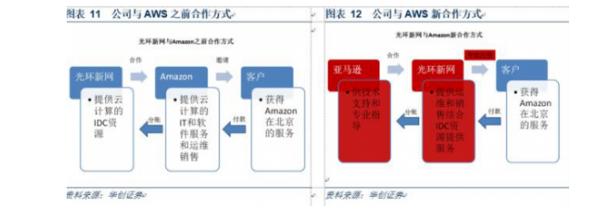 那么整改怎么样了?其实光环之前就已经发过公告了,新的业务模式就是为了满足国家相关政策的要求;公司与亚马逊签订了《运营协议》,公司与AWS的合作模式由公司提供机房转变为公司全权运营AWS中国区(北京)云服务基础设施和平台,AWS将继续向光环新网提供技术支持和专业指导。在分成模式方面,《运营协议》签订以前,公司获得AWS在中国区(北京)租赁IDC的部分收入以及AWS支付的税务成本,《运营协议》签订以后,公司获得AWS中国区(北京)所有收入并向AWS支付授权费和技术支持费用、税务成本以及IDC成本和运维成本。