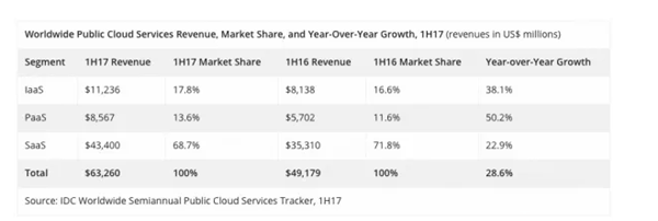 IDC:2017年上半年公有云增长28.6% ,再不用公有云就没有创新
