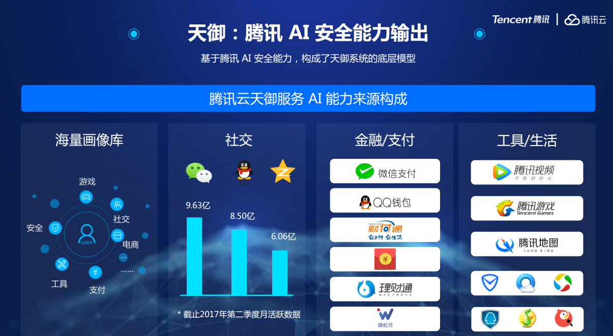 基于腾讯海量的服务。通过腾讯诸如微信、QQ等亿量级社交服务,微信支付、红包、微粒贷等国民金融服务,以及腾讯视频、游戏、地图、腾讯手机管家等行业领先的娱乐、工具类服务,腾讯云天御构建了一个自然人,一个真实个体的完备用户画像,脱离了单一的IP、手机、设备的静态库,构建了一套实时的用户画像系统,腾讯云用户画像腾讯云能够为每个人“订上”2000多个标签,自动根据各项服务完成实时的维护。