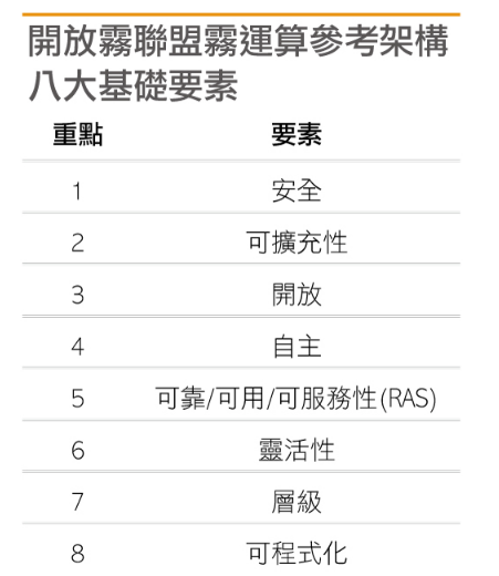 2015年底由全球物联网领导业者齐聚成立的“开放雾联盟”(OpenFog Consortium),也揭示名为“SCALE”的雾计算五大优势,即安全(Security)、认知(Cognition)、灵活(Agility)、延迟(Latency)及效率(Efficiency)。