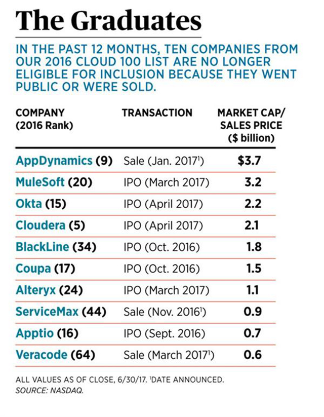 今年福布斯依据运营收入和资金等指标,评选出了2017年云计算企业100强。