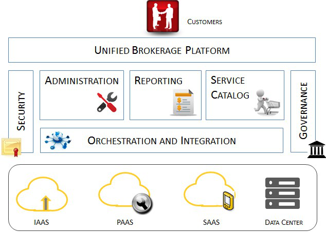 云经纪通过单点登录和联合身份管理系统,以提供一个统一的平台来管理各种云计算服务。它具有更好的成本、性能和可靠性方面的优化特性。云经纪服务消除了管理各个云计算提供平台的复杂性,化繁为简地提供了统一的消费模式。统一的平台还能协助服务的消费者去比较各种类型的云服务,以选取合适的云计算环境,及其配套的部署解决方案和服务。消费者更加能够实现只对其订购与消费了的服务予以支付的模式。这个模式的最主要难题是:服务消费者不得不严重依赖于云经纪的所有操作和支持。