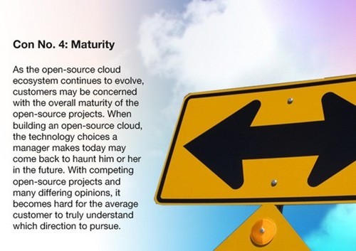 随着开源云生态系统的不断发展,客户可能会担心与开源项目的整体成熟度。当建立一个开源的云,对今天技术的选择可能会直接影响到经理人的未来发展。随着开源项目日益竞争和许多不同的意见的碰撞,客户越加难以做出正确选择。