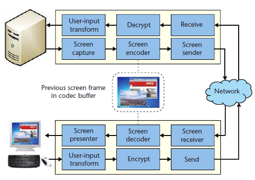 这种屏幕编解码器在编码速度、质量和计算复杂性等方面的表现都超过了用于屏幕图像编码的传统自然图像和视频编解码器。编码和解码过程对GPU也十分友好。主流显卡的GPU加速能够轻而易举地使屏幕捕捉和编码的帧速率达到无GPU加速系统的两倍。[page] (3)屏幕传输(Screen Transmission)