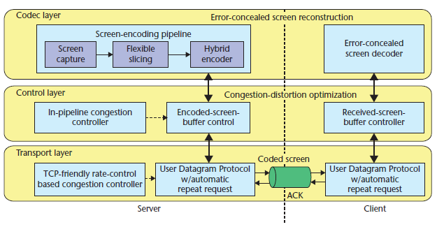 在控制层面,拥塞-失真优化算法(congestion-distortion optimization algorithm)可以调度发送缓冲区中的数据包。这些数据包的调度依据是其对网络拥塞和显示失真的影响程度。有些数据包可能会被丢弃,而不会对后续帧进行重新编码;