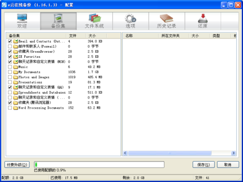电信e云的定位是为家庭用户和430万家中小企业用户提供安全可靠的在线备份服务。如果你想试用,只要在其官方网站注册用户之后,就可以获得2GB的免费存储空间。
