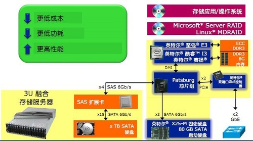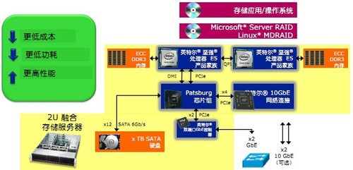 最新一代至强处理器平台,针对云存储可以提供更加出色的性能和能源效率,采用英特尔平台的融合存储服务器可以提供更加高效的存储解决方案,还可以对应用模式不断进行优化。