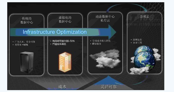 虚拟化(Virtualization)是云计算的基石。也就是说企业实现私有云的第一步就是服务器基础架构进行虚拟化。基础设施虚拟化之后,接下来就是要将现有应用迁移到虚拟环境中。云计算最重要的概念之一就是可伸缩性,实现它的关键则是虚拟化、虚拟化就是在一台共享计算机上聚集多个操作系统和应用程序,以便更好地利用服务器。当一个服务器负载超荷时,可以将其中一个操作系统的一个实例(以及它的应用程序)迁移到一个新的、不相对闲置的服务器上。