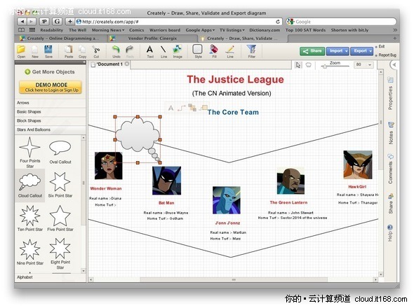 Creately提供了一些用于创建流程图、组织架构图、流程图的模板,可以创建大多数企业常用的图表。你可以和你的团队或者是客户共享一些项目,用标注进行评论,并可以保留版本历史。