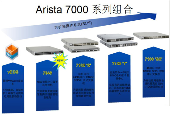 我们可以看到,Arista 7000系列交换机的各个功能实际上都是为万兆以太网数据中心量身定做的,服务于下一代数据中心云网络,10Gb - 40Gb - 100Gb 的主干网。