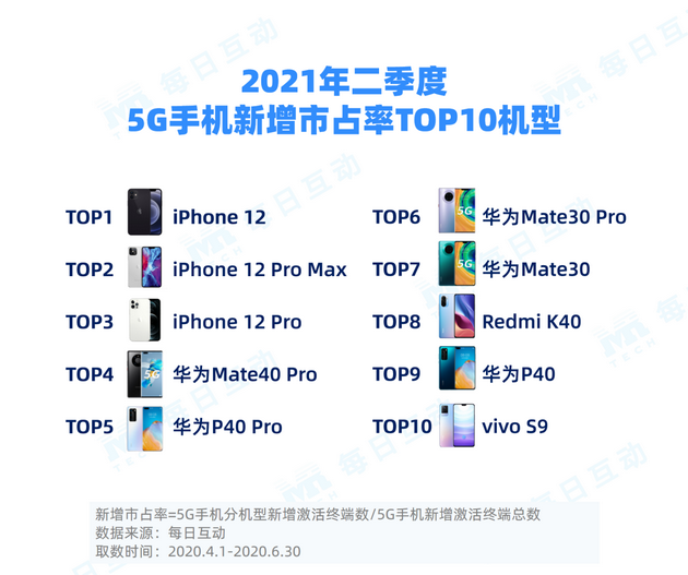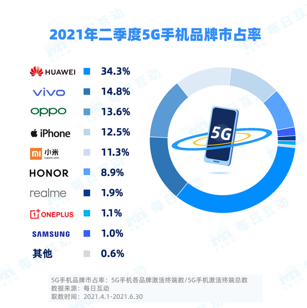 每日互动大数据发布:2021年二季度5G手机报告