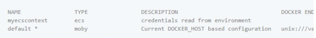 创建 AWS 上下文后,您可以通过运行以下docker context ls命令列出 Docker 上下文: