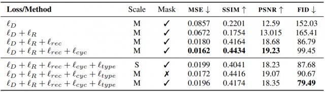 表 2 提供了评估不同损失函数、风格特征扩展以及训练 TSB 时 mask 的作用消融实验结果。实验结果显示,TextStyleBrush 生成的图片在 MSE(合成误差)上大幅降低,PSNR(峰值信噪比)、SSIM(结构相似性)均获得了提高。