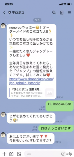例如在LINE中,小冰AI就摇身一变,成为《我和机器妹》的主人公萝卜子 (Roboko)。