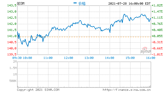 新浪科技讯 北京时间7月29日早间消息,据报道,高通今天发布了截止6月27日的2021财年第三财季财报。报告显示,高通第三财季营收为80.60亿美元,与去年同期的48.93亿美元相比增长65%;净利润为20.27亿美元,与去年同期的8.45亿美元相比增长140%;每股摊薄收益为1.77美元,与去年同期的0.74美元相比增长139%。
