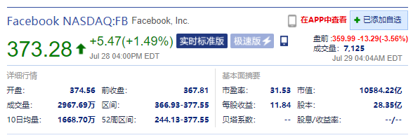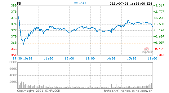 新浪科技讯 7月29日下午消息,Facebook盘前大跌超3%。截至发稿,Facebook盘前跌3.56%。