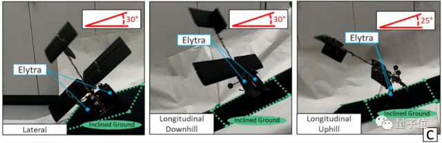 从斜坡来看,这架无人机在最高30°的斜坡上也能成功翻身(超过30°会打滑):
