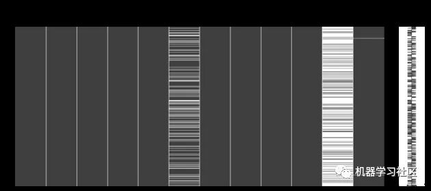 缺失值的可视化:白线表示存在缺失值
