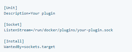 插件也可以通过套接字激活systemd。官方插件助手 本身支持套接字激活。为了使插件被套接字激活,它需要一个service文件和一个socket文件。
