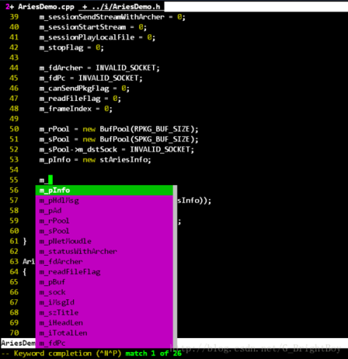 ??????????????重新打开vim即可使用。添加help文件:helptags ~/.vim/doc/即可(打开帮助文件:h(elp) autocomplpop)效果如下: