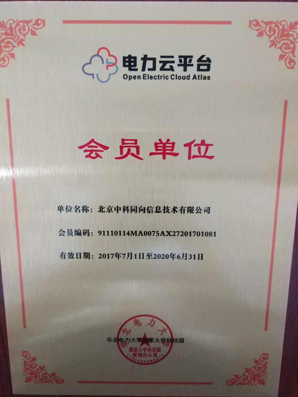 近日,中科同向喜获2017华北电力大学国家大学科技园授予的电力云平台会员单位荣誉。