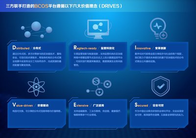 因此,三方联手打造的BCOS平台遵循以下六大价值理念(DRIVES):