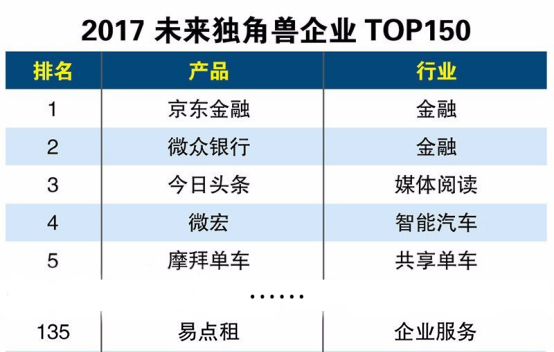 《互联网周刊》与ENet研究院共同评选的“2017年未来独角兽企业TOP150”榜单正式揭晓。该榜单盘点了金融、共享单车、人工智能等行业领域最具潜力150家企业,京东金融、摩拜单车等纷纷入围。这些企业通过不断的技术积累和优势,不断创新迭代,为行业发展带来新的希望与新力量。