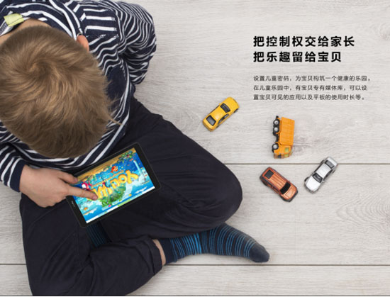 在享受荣耀畅玩平板2带来极致娱乐体验的同时,内置的儿童乐园模式还可以轻松变身为儿童平板,将孩子的可见空间跟家长使用的空间区隔开来,化身成两个独立空间。