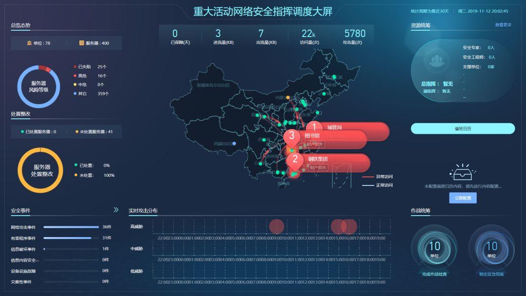 突发网络安全事件时,深信服安全服务运营专家可通过安全感知平台精准分析研判,快速指挥调度,根据应急处置预案有效遏制安全威胁;在水利行业内部组织安全攻防演练时,深信服安全态势感知方案也可通过“重大活动网络安全指挥调度大屏”,协助用户完成网络安全指挥调度工作,提升水利上下联动的主动监测预警与快速统筹指挥能力,真正形成以网络安全大数据分析平台支撑下数据驱动的安全体系。