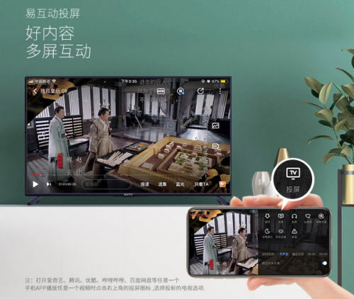 除此之外,易互动投屏功能,可以将手机上的优质影视内容更可直接投屏到电视,电话微信照常使用,娱乐生活两不误。